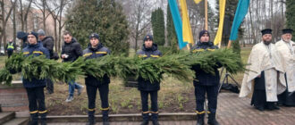 У Тернополі вшанували учасників ліквідації аварії на Чорнобильській АЕС За інформацією: Суспільне Тернопіль. Вінок зі соснових гілок, який кладуть до підніжжя пам’ятника. Суспільне Новости Тернополя