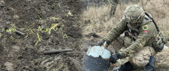 У Корюківському районі вибухотехніки знешкодили збитий російський безпілотник з касетними боєприпасами За інформацією: Суспільне Чернігів. Колаж, на якому зображені касетні боєприпаси та вибухотехнік поліції біля Новости Чернигова