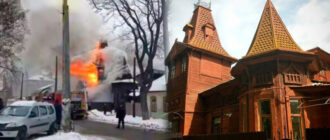У Чернігові сталася пожежа у будинку Тарасевича, який побудували понад 100 років тому За інформацією: Суспільне Чернігів. Колаж, на якому зображено, як горить будинок Тарасевича та який Новости Чернигова