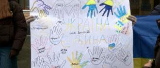 До Дня Соборності України у Вінниці утворили «Живий ланцюг єднання» За інформацією: Суспільне Вінниця. Плакат у руках учасниці акції. Суспільне Вінниця У руках учасники Новости Винницы