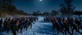 «Льодове побоїще»: що відомо про наймасштабнішу бійку молоді у Чернігові За інформацією: Суспільне Чернігів. Фото, згенероване штучним інтелектом, на якому зображені підлітки перед бійкою Новости Чернигова