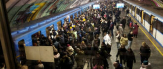 Через масовану атаку РФ на Київ і проблеми з електрикою у місті було обмежено роботу транспорту Столичний метрополітен під час ранкової повітряної тривоги в Києві, 11 листопада 2024 р. Cуспільне Новости Киева