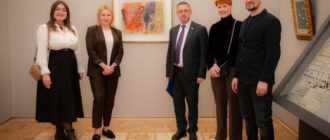 У Музеї авангарду в Києві презентували дві перші виставки Генеральна директорка Музею історії міста Києва Вікторія Муха (друга зліва) на відкритті виставок у Новости Киева