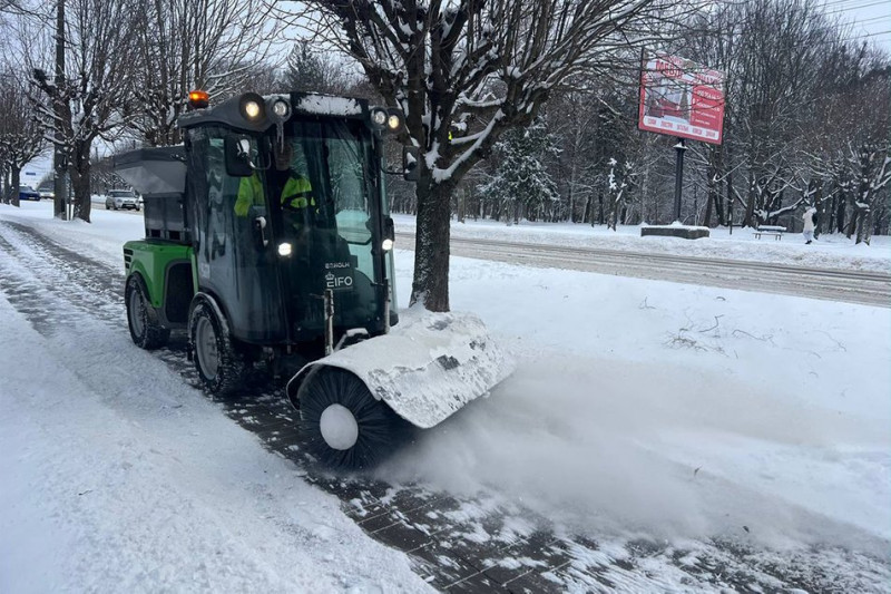 Після розчищення тротуарів, за словами Никифорука, спецтехніка поїде на дозаправлення посипним матеріалом. Обробляють вулиці, аби ввечері уникнути ожеледиці.