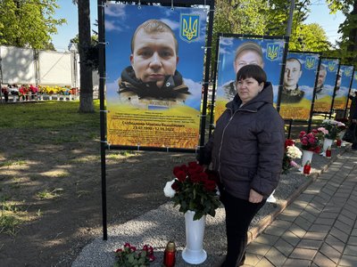 До портрета сина Володимира прийшла Марія Нікіфорова. Жінка розповіла, що він навчався у місцевій школі, згодом здобув педагогічну освіту і працював учителем.