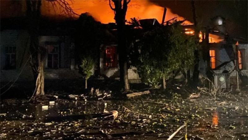 Як ідеться у повідомленні, це сталося о 22:55. На місці влучання спалахнула пожежа.