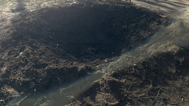 Вирва від російського удару біля Інституту отоларингології ім. проф. О.С. Коломійченка, який зазнав пошкоджень. Суспільне новини/Ліля Гончарук
