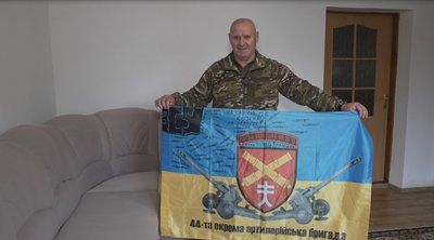 Ветеран з Тернопільщини Микола Дорош показав прапор бригади, з підписами військових. Суспільне Тернопіль