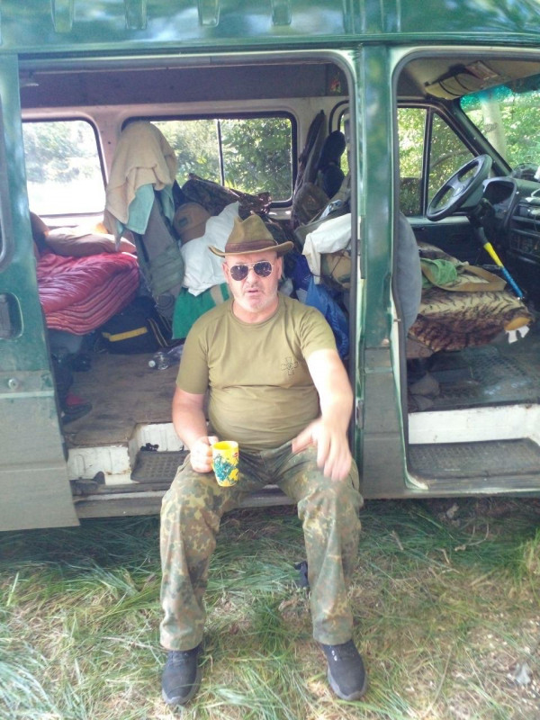 "Це ми коли стояли під Малином в лісі, в цьому моєму бусі, з яким я чотири роки воював. Це я і мій син".