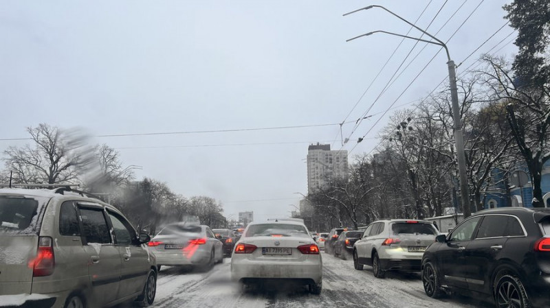 У Києві через сніг та ожеледицю на дорогах затори