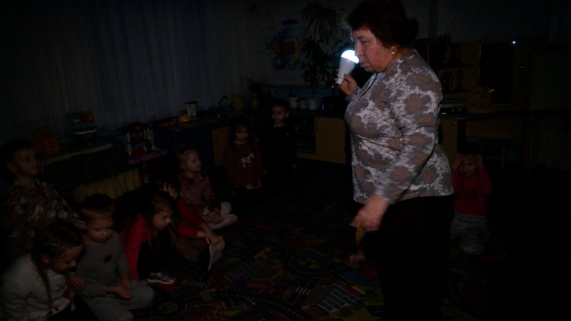 У той самий час, вже без світла, у групах проводять заняття. Вихователька середньої групи Антоніна Іващенко розказує, що без електроенергії її робота неабияк ускладнилася. Зважаючи на те, що в місті часто звучать повітряні тривоги, їй необхідно зібрати дітей в укриття, увечері робити це доводиться із ліхтариком у руках.