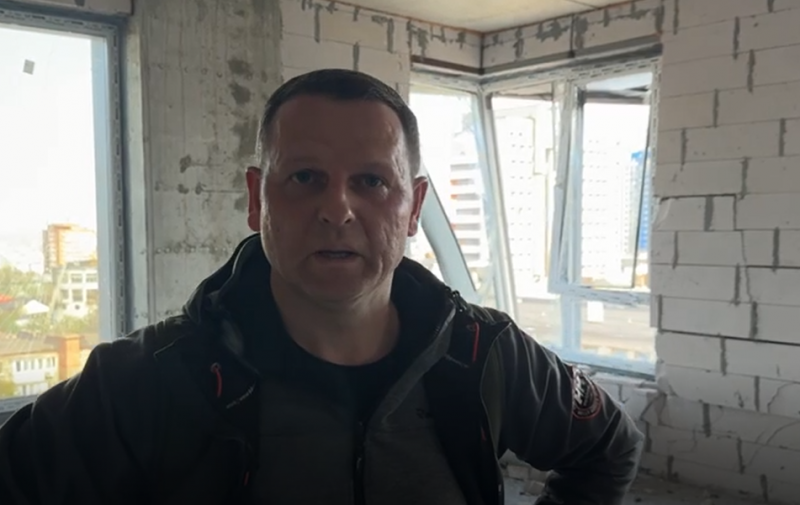 Квартира Ігоря на восьмому поверсі. Чоловік розповів: у помешканні, де планували робити ремонт, вцілила лише одна стіна.
