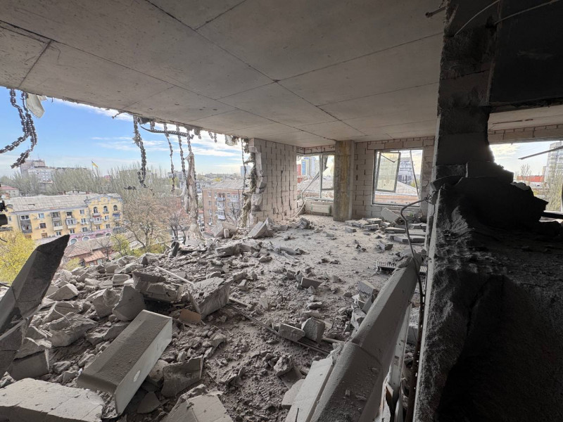 Через атаку армії РФ по середмістю Дніпра в ніч проти 15 квітня пошкоджена новобудова. Дрон влучив у дев'ятиповерховий будинок, який заселений на 60%. Від удару знесло кілька стін на трьох поверхах, пошкоджено фасад, вибиті двері та вікна.