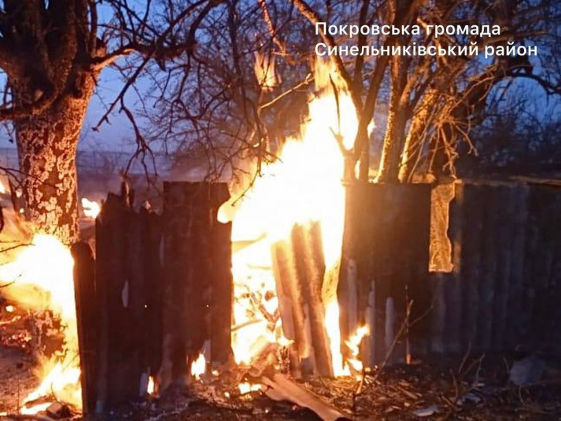 Окрім Дніпровського району, який атакували ввечері, під ударом був Синельниківський. Поцілили по Покровській громаді. Виникло кілька пожеж. Знищені два приватні будинки, гараж і господарська споруда. Ще чотири оселі понівечені.