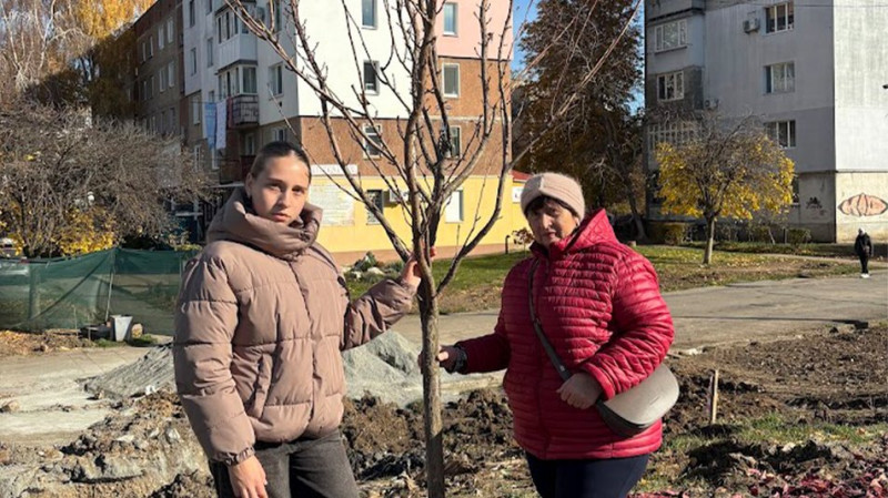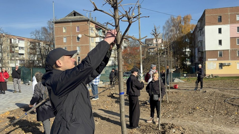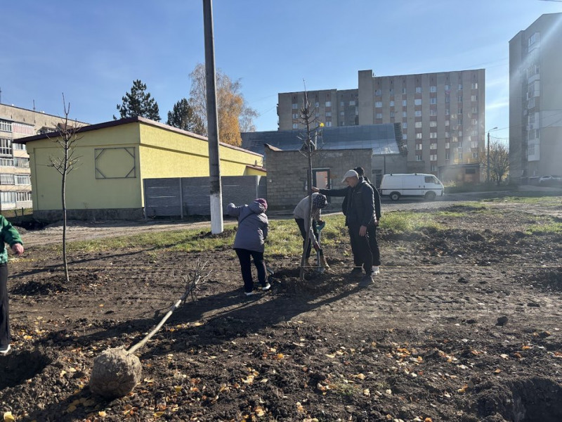 Люди висаджують дерева на Алеї пам’яті у Новодністровську. Суспільне Чернівці