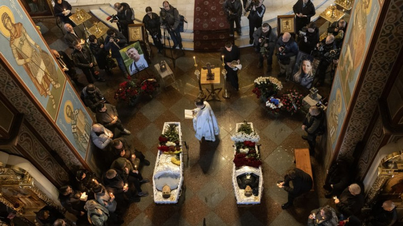 У столиці попрощалися із журналісткою Оленою Губановою та оператором телеканалу FreeДом Євгеном Кармазіним, які загинули від удару російського дрона в Краматорську.