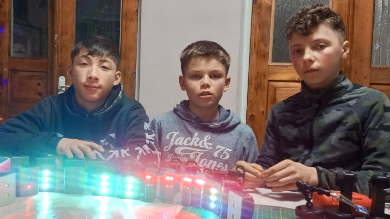 "Я люблю малювати, а таким технічним раніше не займався. Дивився відеоінструкції, з першого разу не вийшло, але потім усе вдалося. Уже зробив 10 ліхтариків. Спочатку припаюємо проводи, потім робимо батарею, під’єднуємо діоди через резистор і дивимося, чи світиться. Це командна робота, і дуже важливо бачити результат", — розповів 15-річний Станіслав Козир.