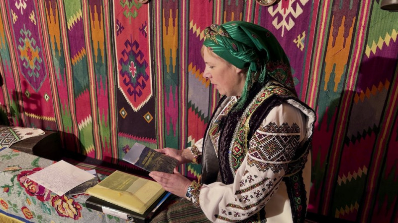Керівниця гуртка Марія Карповець показує словник діалектів. Суспільне Чернівці