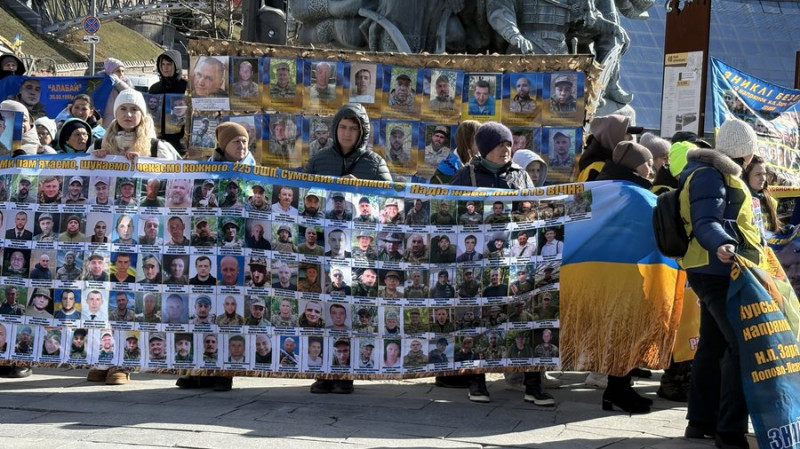 Чекали три роки: у Києві під час акції родичів військовополонених жінка дізналася про повернення сина з полону