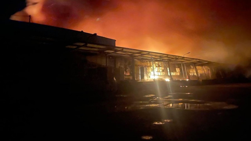 Пошкоджені склади через обстріли Павлограда на Дніпропетровщині у ніч проти 7 квітня. Facebook/Star Brands