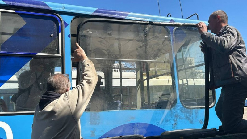 Внаслідок обстрілу пошкоджено пʼять тролейбусів. Нині їх відновлюють, роботи планують завершити до понеділка.
