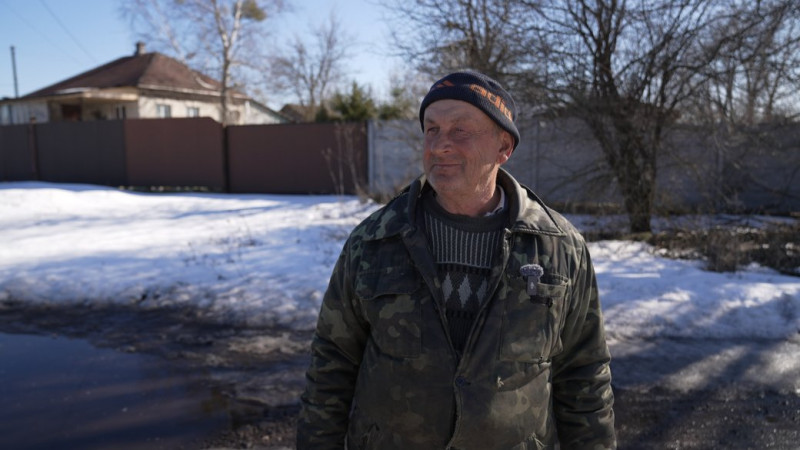 Володимир також живе у Золотинці. Чоловік показує свої резинові чоботи. Каже, що зараз без них не обійтися.