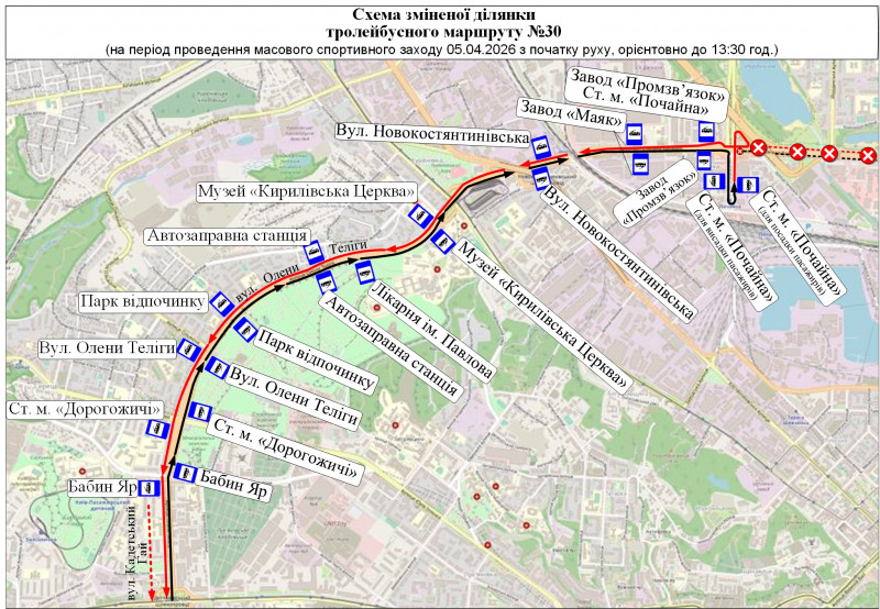 Тролейбус № 30 – від вул. Кадетський Гай до ст. м. "Почайна".