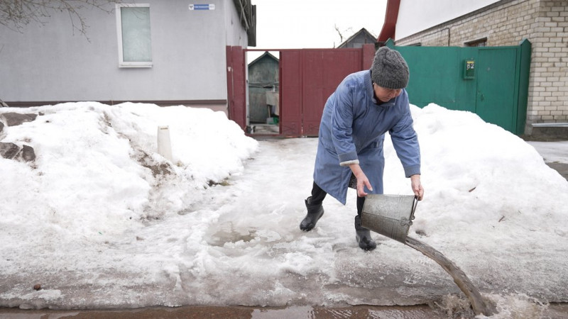 Марія виливає воду з подвір’я на дорогу. Суспільне Чернігів"Ми у 1971-му заселились. Приїхали сюди. У підвалі була, в погребі була вода".