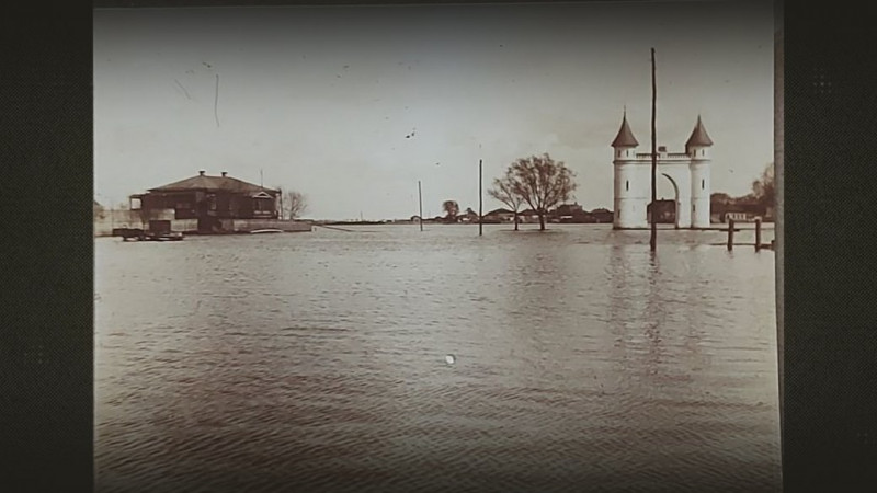 Найкраще видно тодішній рівень води у порівнянні з сьогоденням — на Красному мосту.