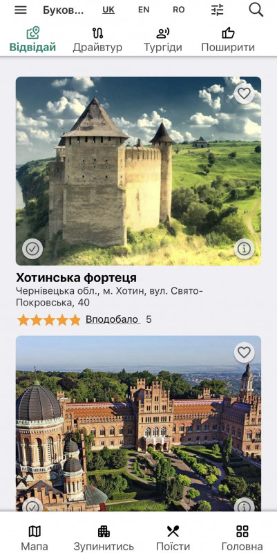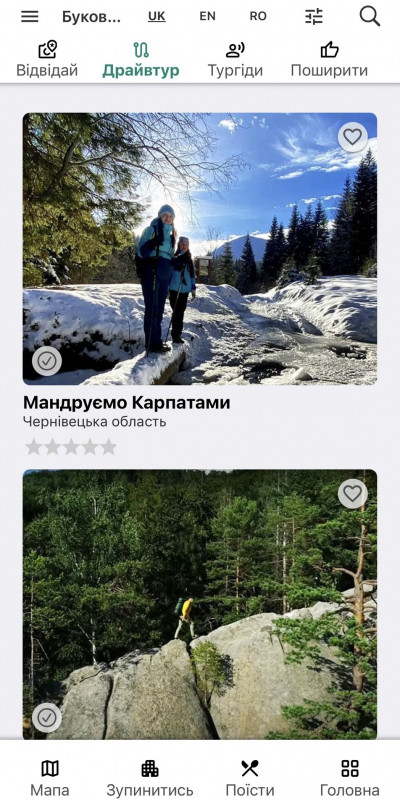 Вигляд додатку «Буковина Travel». Суспільне Чернівці