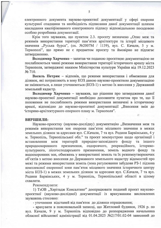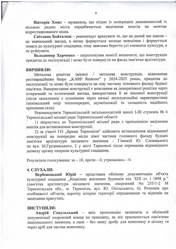 "Консультативною радою не було передбачено конкретно, хто має робити цю документацію, а ідеально щоб це була власне тернопільська школа, її представник, як балансоутримувач приміщення і громадська організація "Брами Тернопілля", як ініціатори і як ті, хто допомагають повернути на місце те, що було демонтовано".