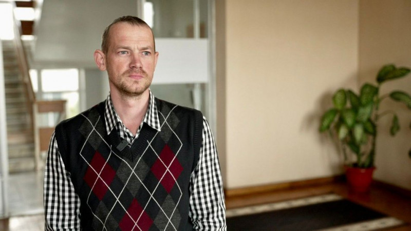Захар Дябло показує відреставровану конструкцію. Суспільне Тернопіль