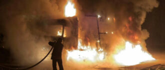 РФ атакувала цивільний автобус із пасажирами у центрі Нікополя, 7 квітня 2026 року. Олександр Ганжа/Telegram
