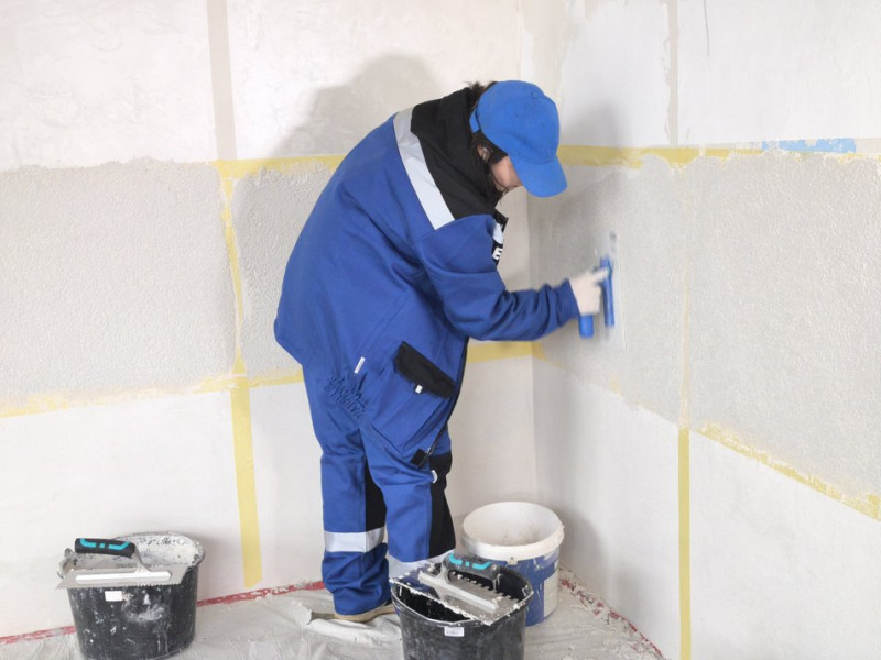 Марія Вербовська наносить штукатурку. Суспільне Чернівці