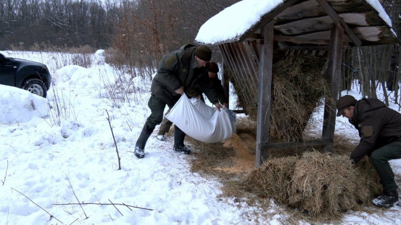 Єгері розкладають корм для зубрів. Суспільне Вінниця