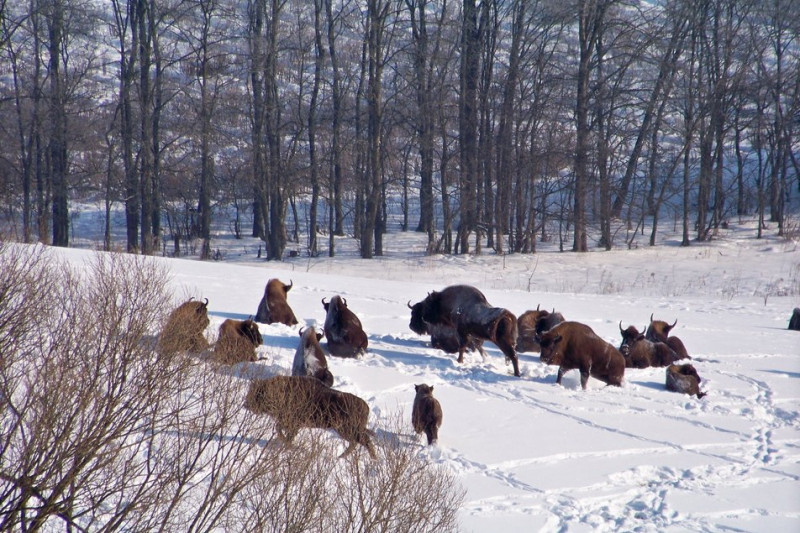 Стадо зубрів на Вінниччині. ДП «Ліси України»