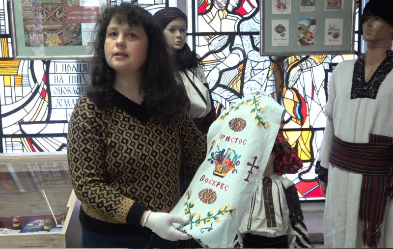 Галина Завіша показує рушник на великодній кошик. Суспільне Тернопіль