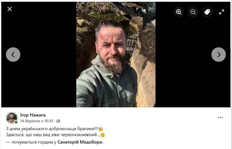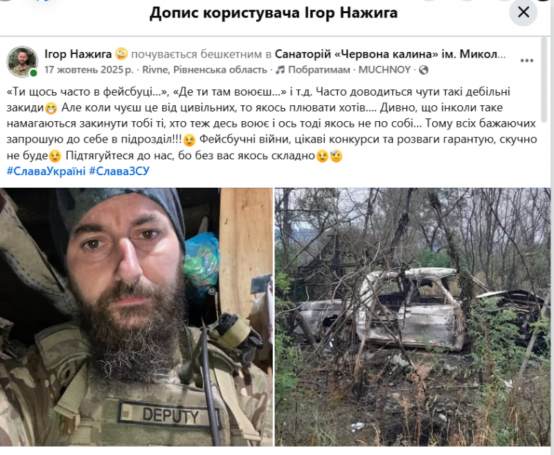 Допис зі сторінки Ігоря Нажиги з геолокацією «Санаторій «Червона калина». Ігор Нажига