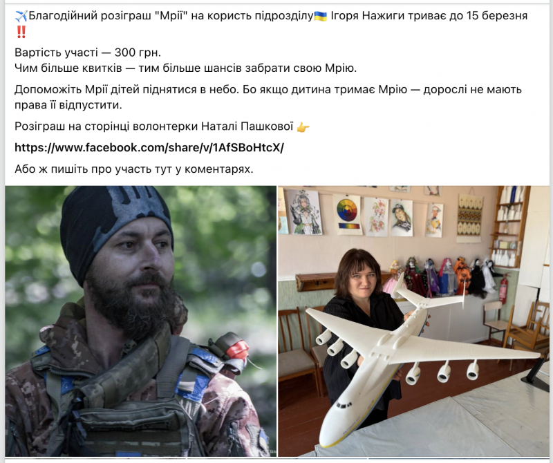 Розіграш макету літака «Мрія» на підтримку підрозділу Ігоря Нажиги. Наталя Пашкова