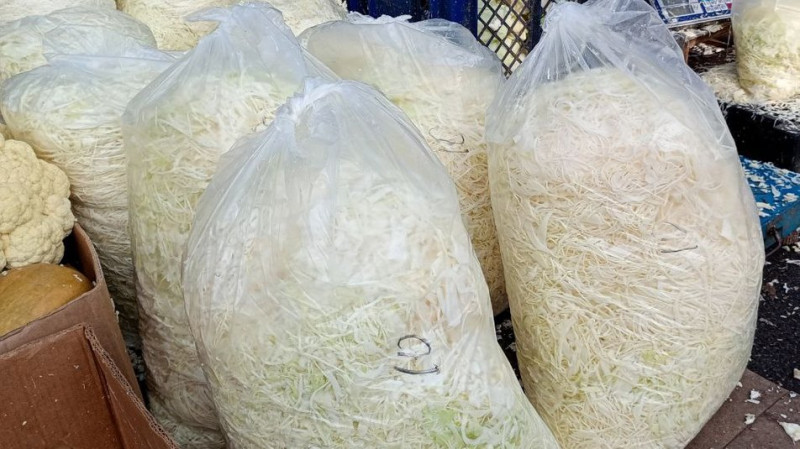 Подружжя Олещуків також продають січену капусту. Василь розповів, що цього року ціна на неї нижча, ніж минулого: