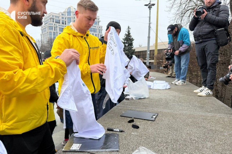 Організатори усім видавали символічні футболки з написом #ДистанціяПамʼяті. А вже самі учасники могли також написати маркером на футболці ім’я загиблої людини, яку вони вирішили вшанувати.