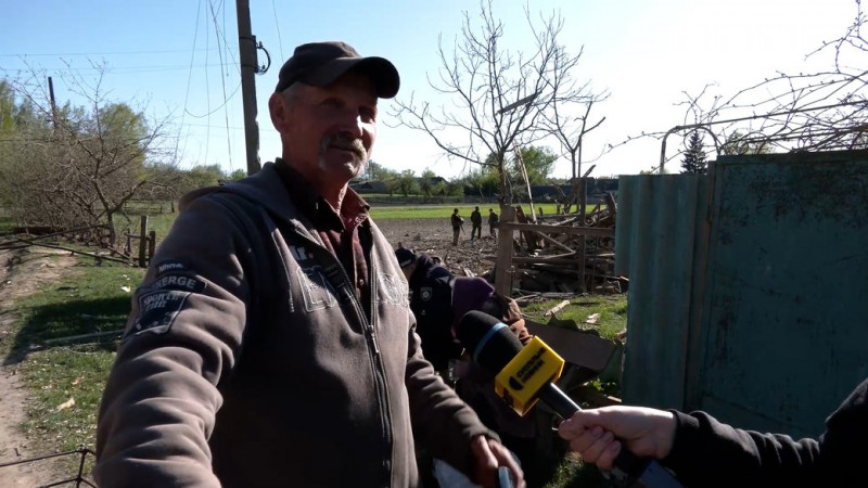 "Зразу вибух – і все. А тоді пилюка. Коли воно летіло, уже бачу, воно падати буде – і ми з жінкою попадали. І корова стояла. Корову минуло і нас минуло. Слава Богу, ми живі залишились".