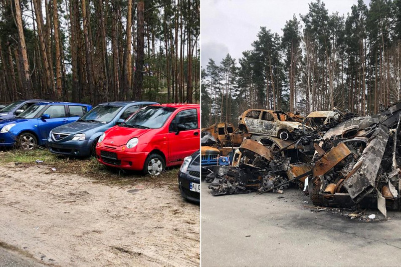 Одне з місць у Київській області, де поліцейські працювали зі швидкісною лабораторію, до та після обстрілу. Василь Багрій
