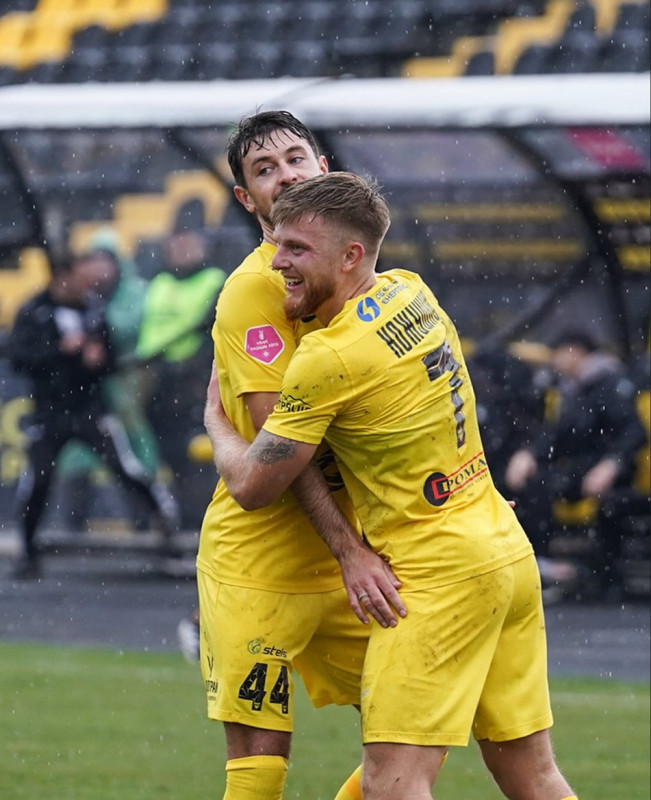 Емоції Олега Кожушка після другого голу у поєдинку проти «Юкси». ФК «Буковина»