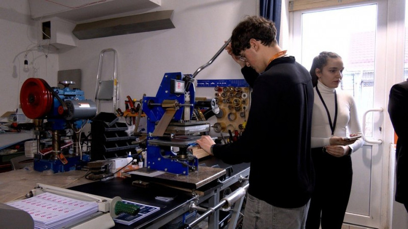 Наразі у неї працюють четверо людей. Серед них — Максим, який займається тисненням пластикових карток на спеціальному обладнанні. Розповів, що робота для нього не лише цікава, а й корисна, адже він — студент третього курсу спеціальності "Журналістика". Тож тут здобуває практичний досвід.