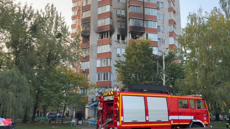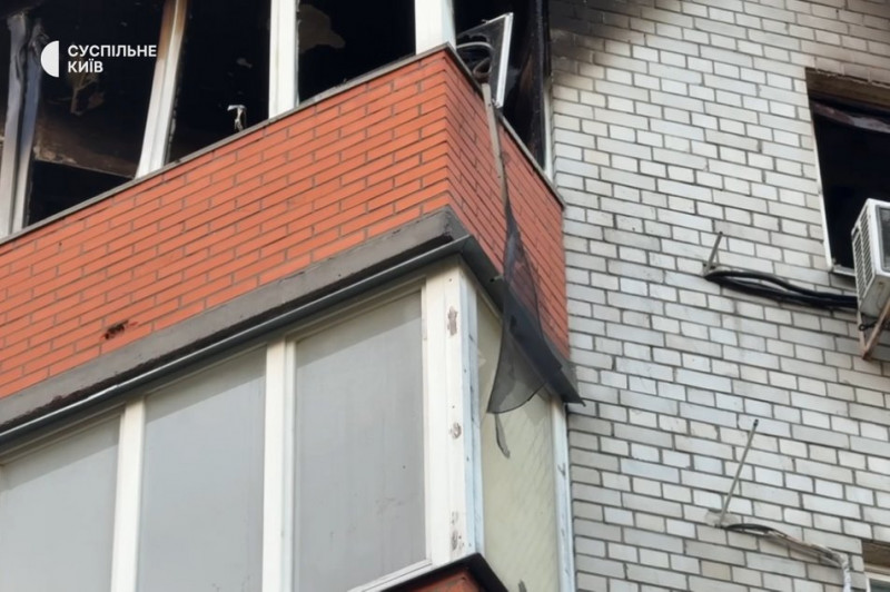 У Дніпровському районі уламки збитого БпЛА влучили в житловий будинок. Удар припав на рівень шостого поверху 16-поверхівки, після чого спалахнула пожежа.
