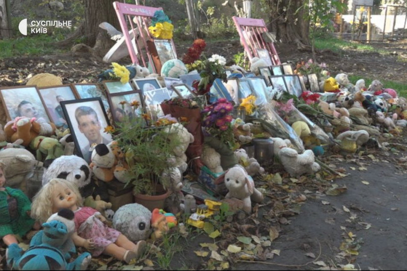 Фото, квіти та іграшки біля будинку у Святошинському районі Києва за адресою: вул. Кучера-2А. Суспільне Новини/Ліля Гончарук