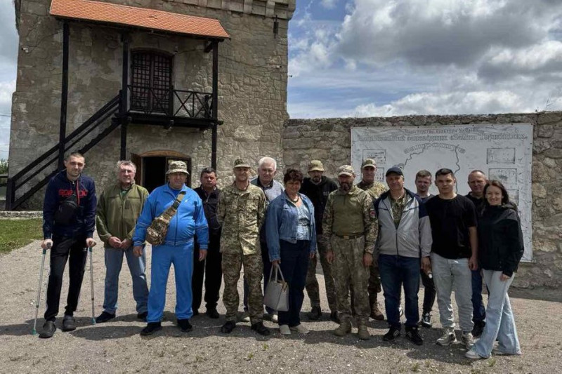 Юлія Смоляк проводить екскурсію для військових та ветеранів за програмою «Відновлення культурою». Юлія Смоляк