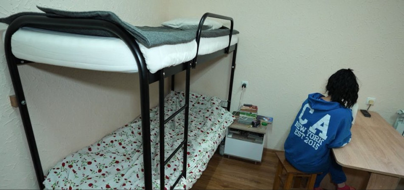 Тут дерев’яні ліжка з ортопедичними матрацами, санвузли та відокремлені душові. Також облаштовані кухні. За нормами, санвузол має бути не менше трьох квадратних метрів.