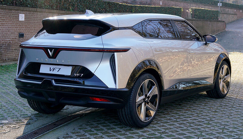 Незважаючи на молодість виробника, у моделей вже сформувався відомий дизайн. Новий VinFast VF7 – не виняток. Тут і фірмова пластика, і стилізована V спереду, і характерна смужка задніх ліхтарів.